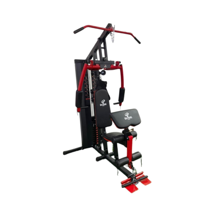 Mini gimnasio de 1 estación en color rojo, compacto y funcional, ideal para entrenamientos básicos en casa.