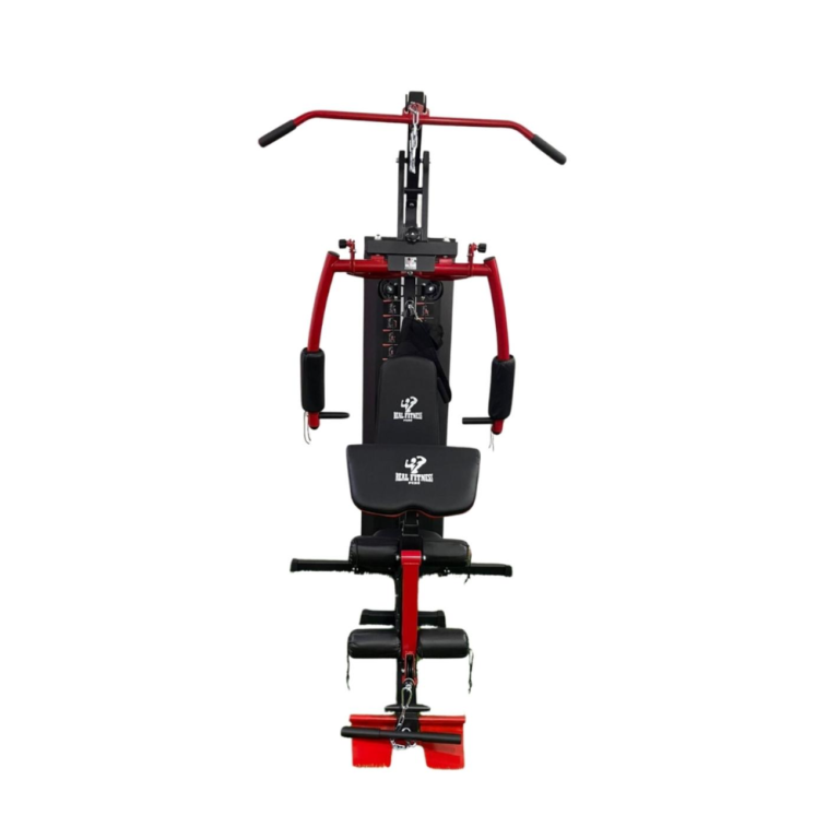 Mini gimnasio de 1 estación en color rojo, compacto y funcional, ideal para entrenamientos básicos en casa.